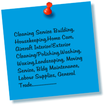 Management Team Satisfied Customers Director's Message Office & Bldg Cleaning Airlines & Airports Toilets & Janitorial Services Landscape Indoor Services Equipment Maintenance Special Trainning Cleaning Services HSE / CSR Iso & Ohsas Certified Contact Us PT. Avia Jaya Indah PT. Avia Jaya Indah PT. Avia Jaya Indah Cleaning Service Building, Housekeeping,Home Care, Aircraft Interior/Exterior Cleaning/Polishing,Washing,Waxing,Landscaping, Moving Service, Bldg Maintenance, Labour Supplies, General Trade....................